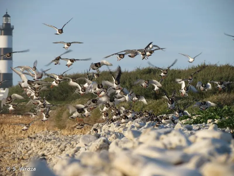 Vit en petits groupes, se reproduit à partir de 2 ans et pond de mi-mai à fin juin. Les accouplements s'accompagnent de simulations d'aménagement de nid, simple creux garni de végétaux. La couvaison des 4 œufs assurée par les deux adultes dure 22 à 24 jours. Envol des jeunes à 20 jours. Se nourrit d'invertébrés marins et terrestres, baies et graines.
