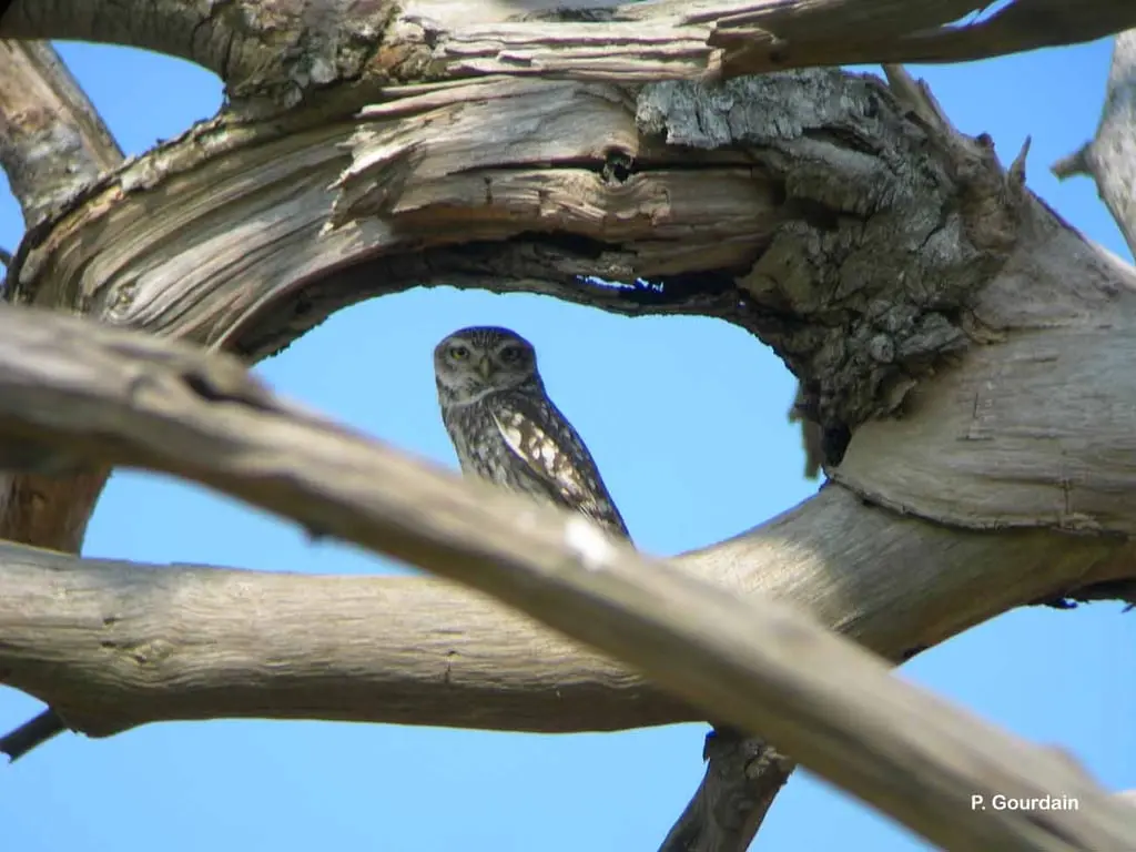 La Chouette chevêche est très sédentaire. Elle ne migre pas et elle est très territoriale. Les individus vivent en couple, y compris en dehors de la période de nidification et les couples sont généralement unis pour toute leur vie. Ils fréquentent les mêmes reposoirs, rejoignent la même cavité et parcourent leur territoire ensemble.