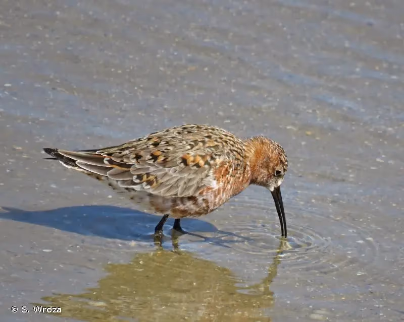 En plumage inter-nuptial, confusion possible avec le bécasseau variable (Calidris alpina). Ce dernier est malgré tout plus haut sur pattes et son bec est plus long et plus courbé.