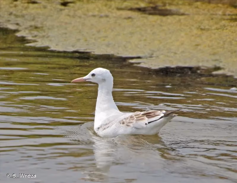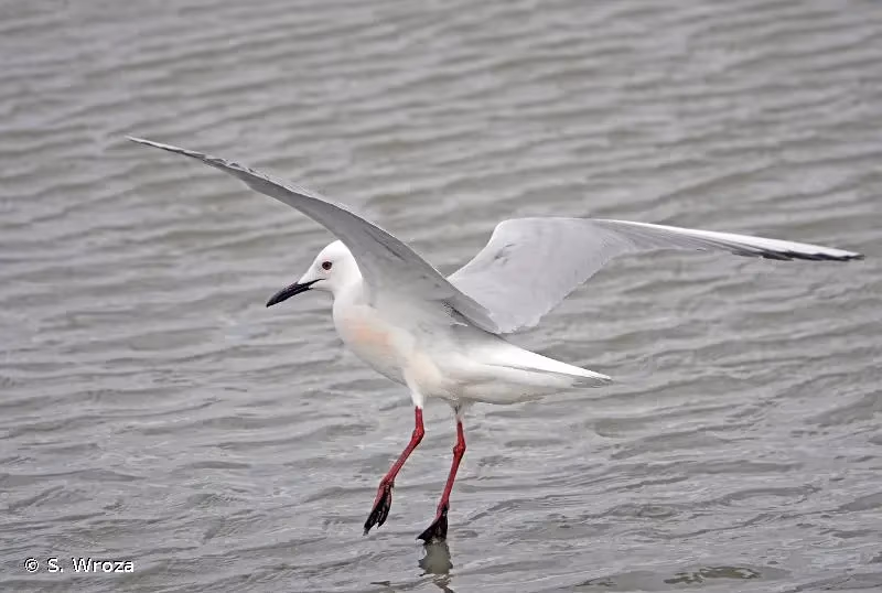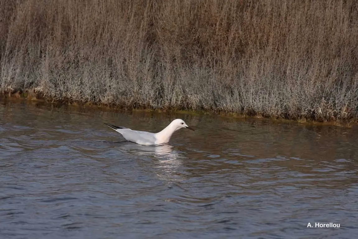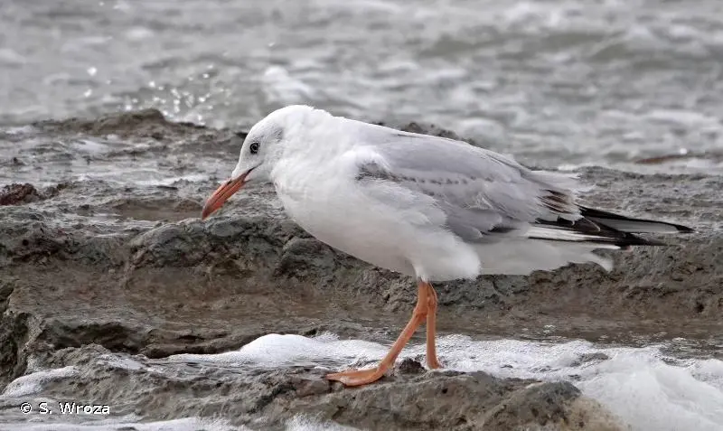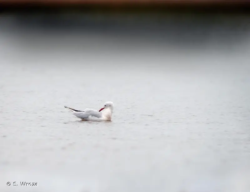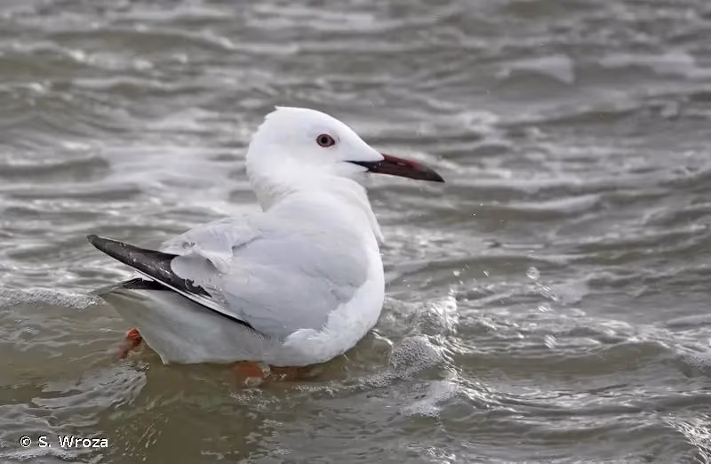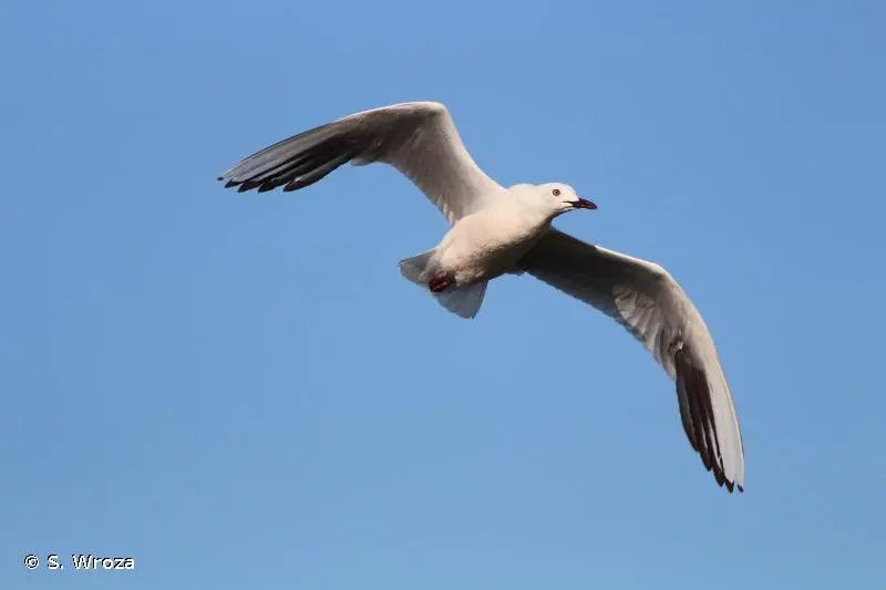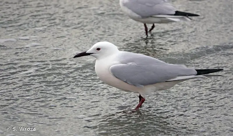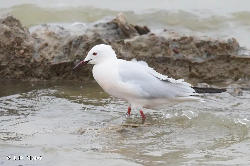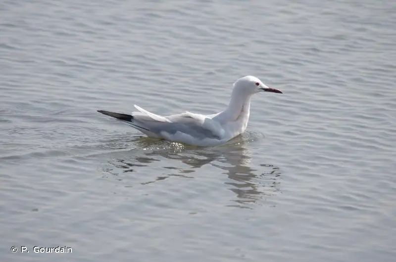 En période nuptiale, la Mouette rieuse (Chroicocephalus genei), de taille à peine plus petite, se distingue par son capuchon brun noir. En hiver, la perte de ce capuchon rend la distinction plus délicate mais cette espèce est un peu plus trapue, avec un bec plus fort et moins pointu, et une tâche noire en générale mieux marquée sur les parotiques.