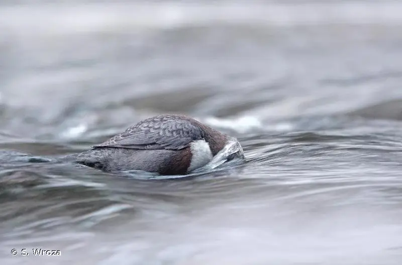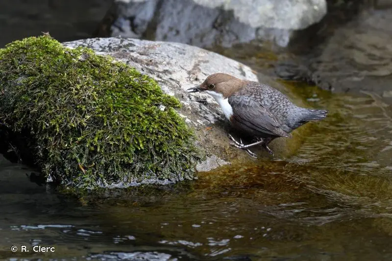 Le Cincle se nourrit surtout d'invertébrés aquatiques qu'il recueille dans le lit des rivières en plongeant ou marchant sur le fond.