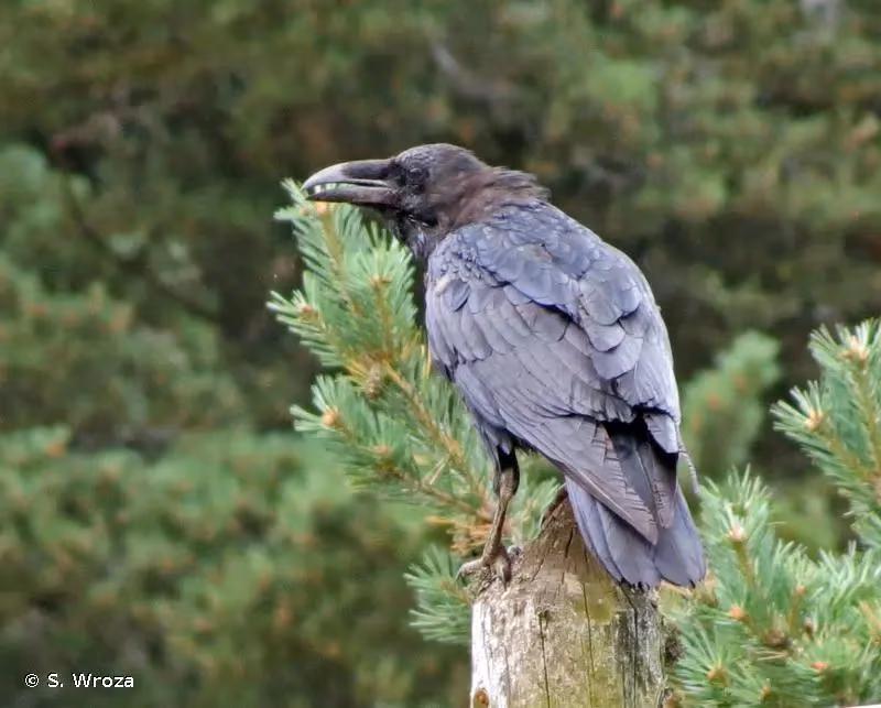 On peut parfois confondre le Grand Corbeau avec les autres grands corvidés noirs cependant tous de taille inférieure. La Corneille noire Corvus corone a une queue droite, des ailes relativement plus larges et un vol plus souple. Le Corbeau freux Corvus frugilegus présente un front plus bombé et surtout une base du bec caractéristique, où la peau est nue.Période d'observation :