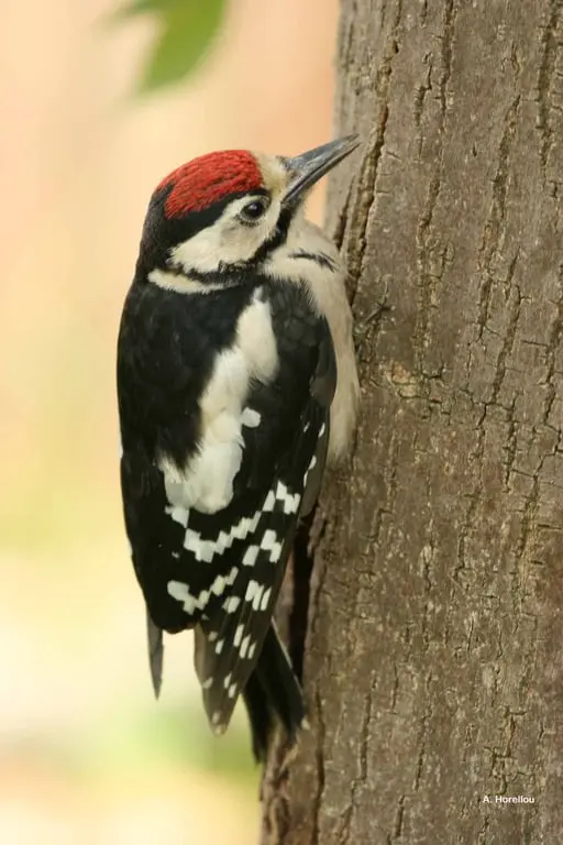 Pic de taille moyenne présentant un plumage à dominance noir et blanc. Sur les parties supérieures noires contrastent deux tâches blanches qui s'étendent sur une large zone des scapulaires et des couvertures. Le croupion est rouge ainsi que la nuque du mâle adulte et la calotte du juvénile (noire chez l'adulte).