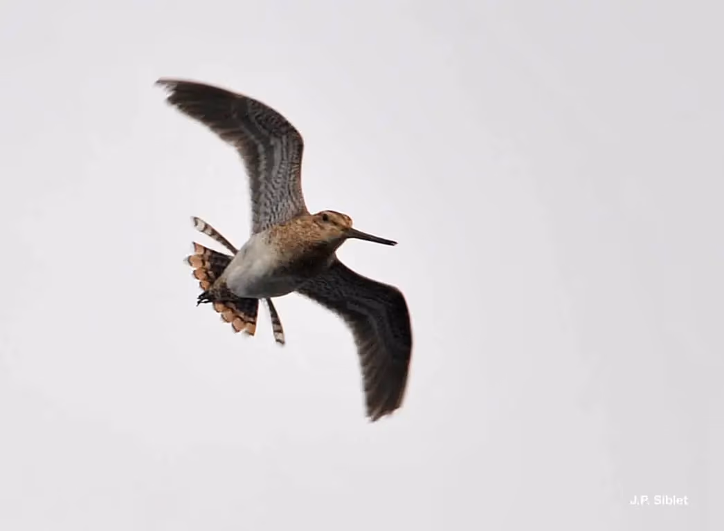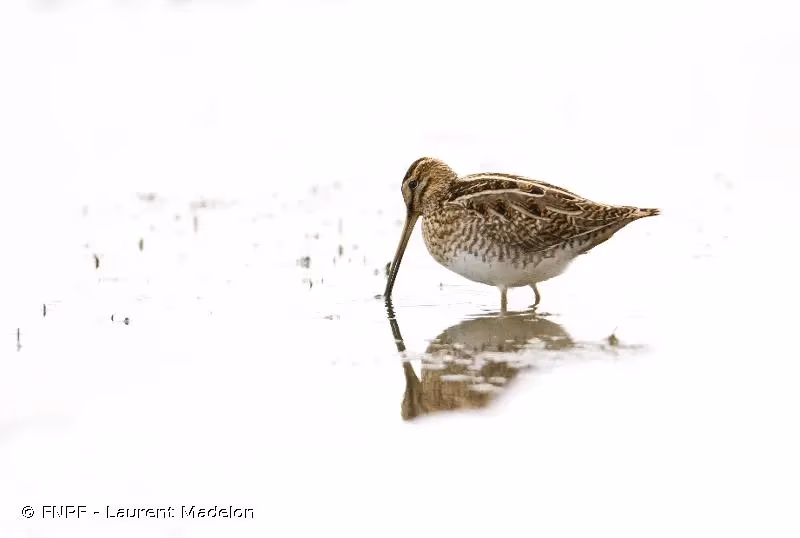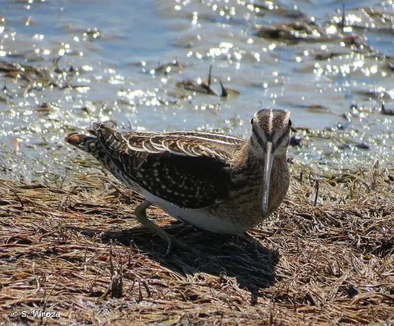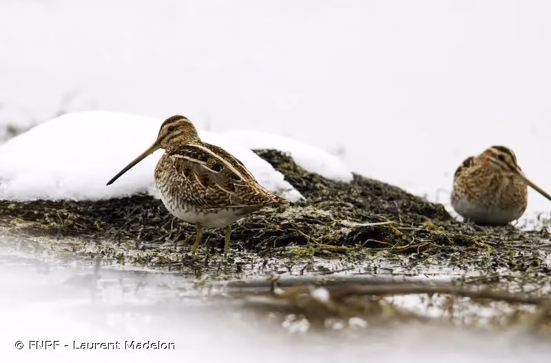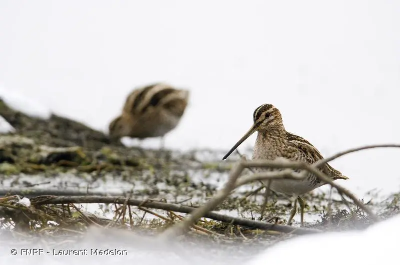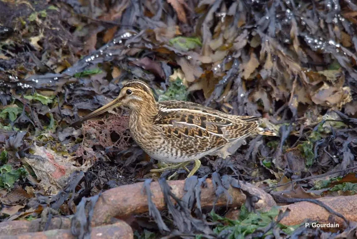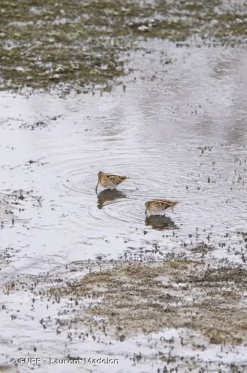 La Bécassine des marais se différencie facilement de la Bécassine sourde (Lymnocryptes minimus). Cette dernière, un tiers plus petite, s'envole dans les pieds sans crier, son vol est plus lent, droit et rasant, sa queue est cunéiforme.