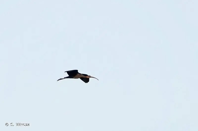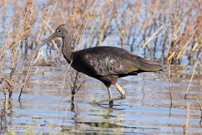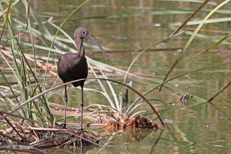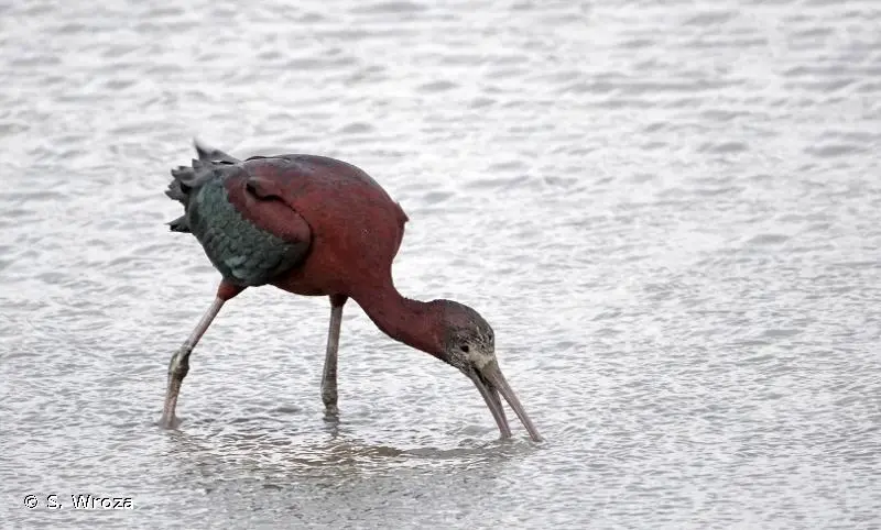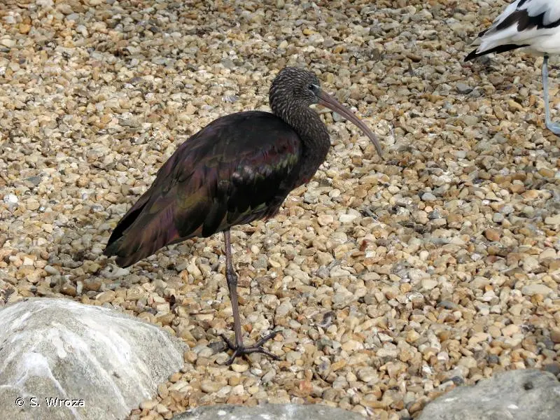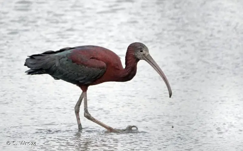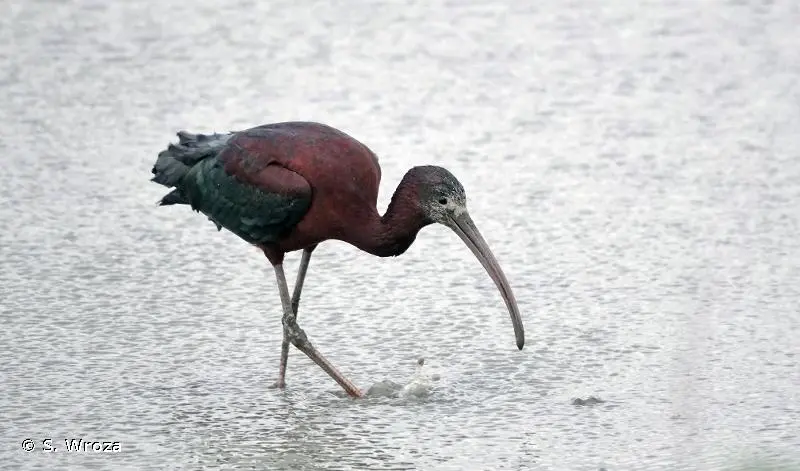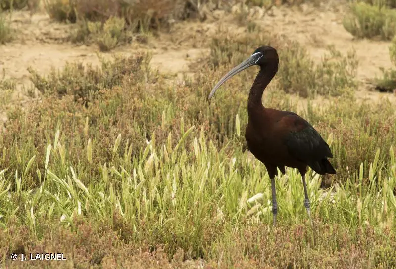 La couleur de cette espèce est brun rouille foncé, avec des reflets métalliques verts. Son bec est long, arqué vers le bas et assez mince. Ses longues pattes noirâtres sont parfaitement adaptées à la marche en milieu aquatique. Le plumage inter-nuptial est plus terne. Il n'y a pas d'important dimorphisme sexuel.
