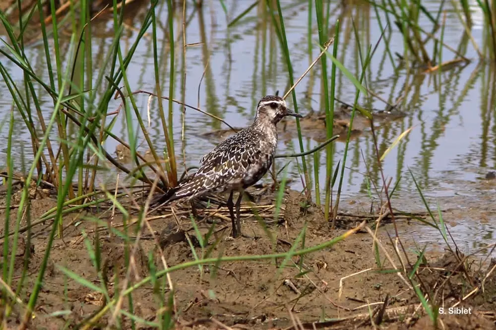 Ressemblance possible avec le pluvier argenté (Pluvialis squatarola) au stade juvénile, mais le Pluvialis dominica est plus fin et foncé.