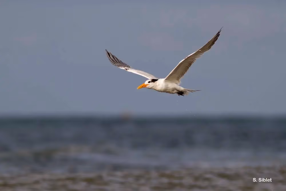 Confusion possible avec les autres espèces de Sternes mais le bec large, long, pointu et uniformément orange de la Sterne royale est caractéristique.