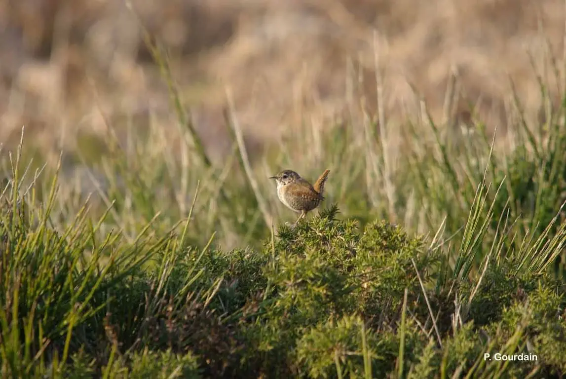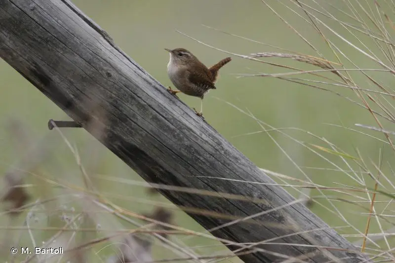 Oiseau de très petite taille, de couleur sombre, à silhouette ronde. Les mâles et les femelles se ressemblent. Les parties supérieures sont brunes. Les rémiges présentent des barres noires et sont couvertes de taches chamois plus claires. Un long sourcil contraste un peu avec le reste de la tête. Les parties inférieures sont plus claires. Les pattes sont fortes, le bec fin et allongé et les rectrices courtes ont un port dressé en permanence.