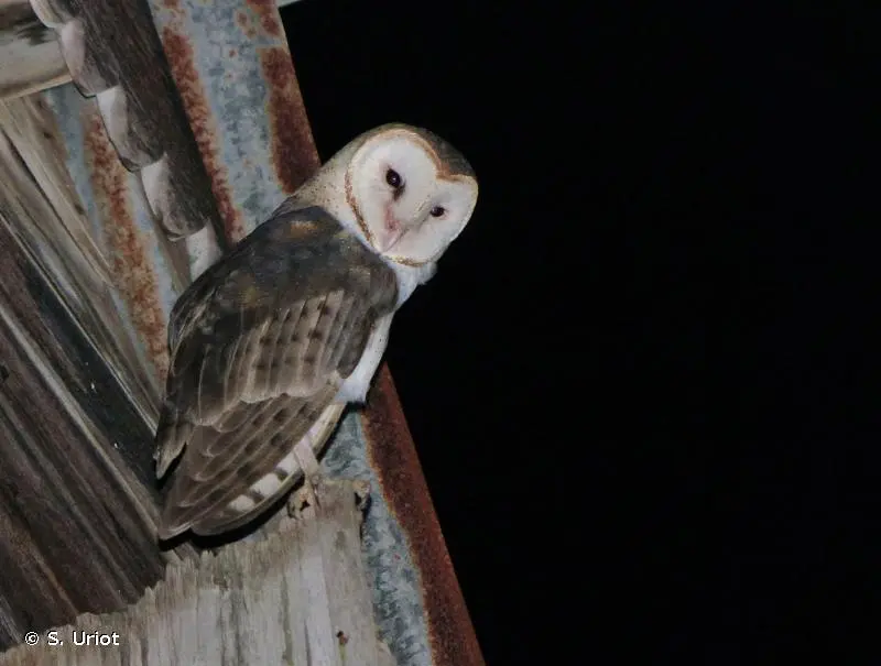 La Chouette effraie possède un plumage assez clair. Le dessus est gris ponctué de fines tâches noires et blanches et le dessous est brun-jaune constellé de petites tâches brun-foncé ou blanc. Les longues pattes sont emplumées mais le plumage se raréfie à proximité des doigts. La Chouette effraie se caractérise par un masque facial pâle en forme de cœur qui permet de la différencier facilement des autres chouettes.