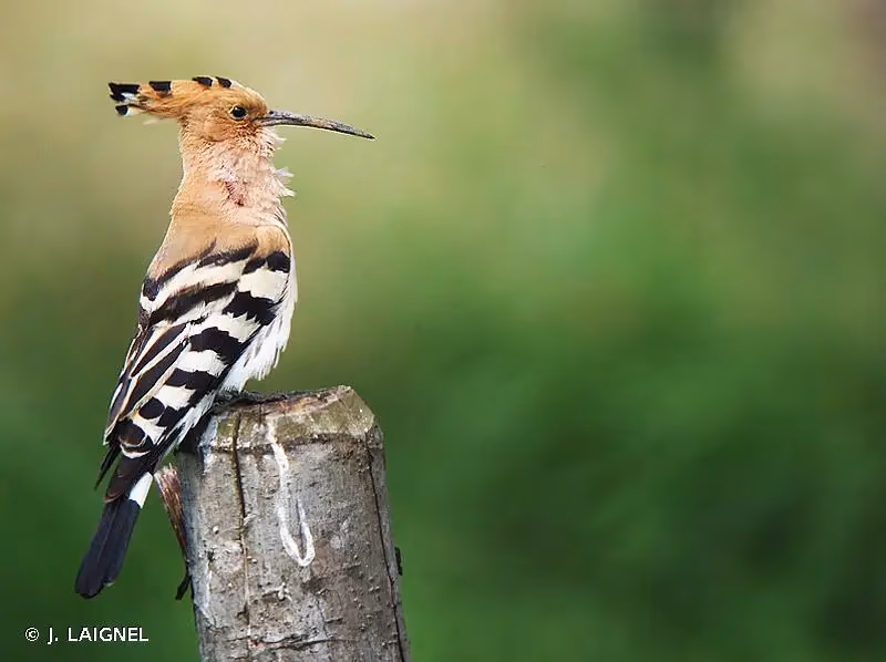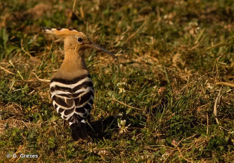 La Huppe fasciée est un oiseau de la taille du Geai des chênes Garrulus glandarius. Son plumage est caractéristique : tête, poitrine et partie antérieure du manteau sable orangé ; ailes, dos et queue noirs rayés de bandes blanches ; ventre et couvertures sous-caudales blanc pur ; flancs et bas de la poitrine marqués de quelques stries sombres. Les deux caractères les plus notables sont la présence d'une huppe érectile aux plumes maculées de noir à l'apex et d'un long bec gris sombre légèrement arqué, qui donne à la tête de la huppe une forme de pioche (epops en grec). En vol, la huppe présente une silhouette typique de grand papillon aux ailes larges et arrondies. Le chant, composé de deux à quatre notes, est à l'origine du nom latin Upupa.